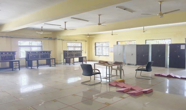 The Electrical Workshop at Government Polytechnic, Berhampur, focuses on the repair and maintenance of machinery, equipment, and apparatus used in the measurement, generation, transmission, storage, of electric power. The workshop plays a vital role in providing practical training and ensuring the functionality of essential electrical systems.