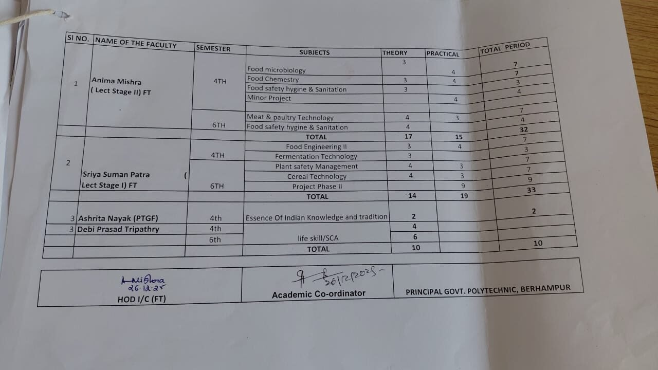 H.O.D (I/C), Lecturer 23 Years Teaching Experience B.Tech (Food Tech. & Engineering)